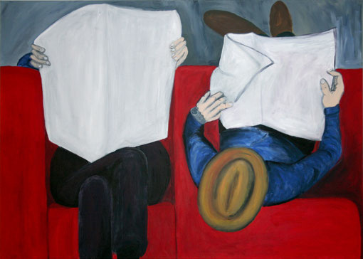 Die Zeitungsleser, 150 x 100 cm, Acryl auf Leinwand